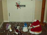 My "thoughtful" sister and I came up with all sorts of things to do with the elves for that first Christmas! We had them "fighting" with the snowmen - (ex are as follows):